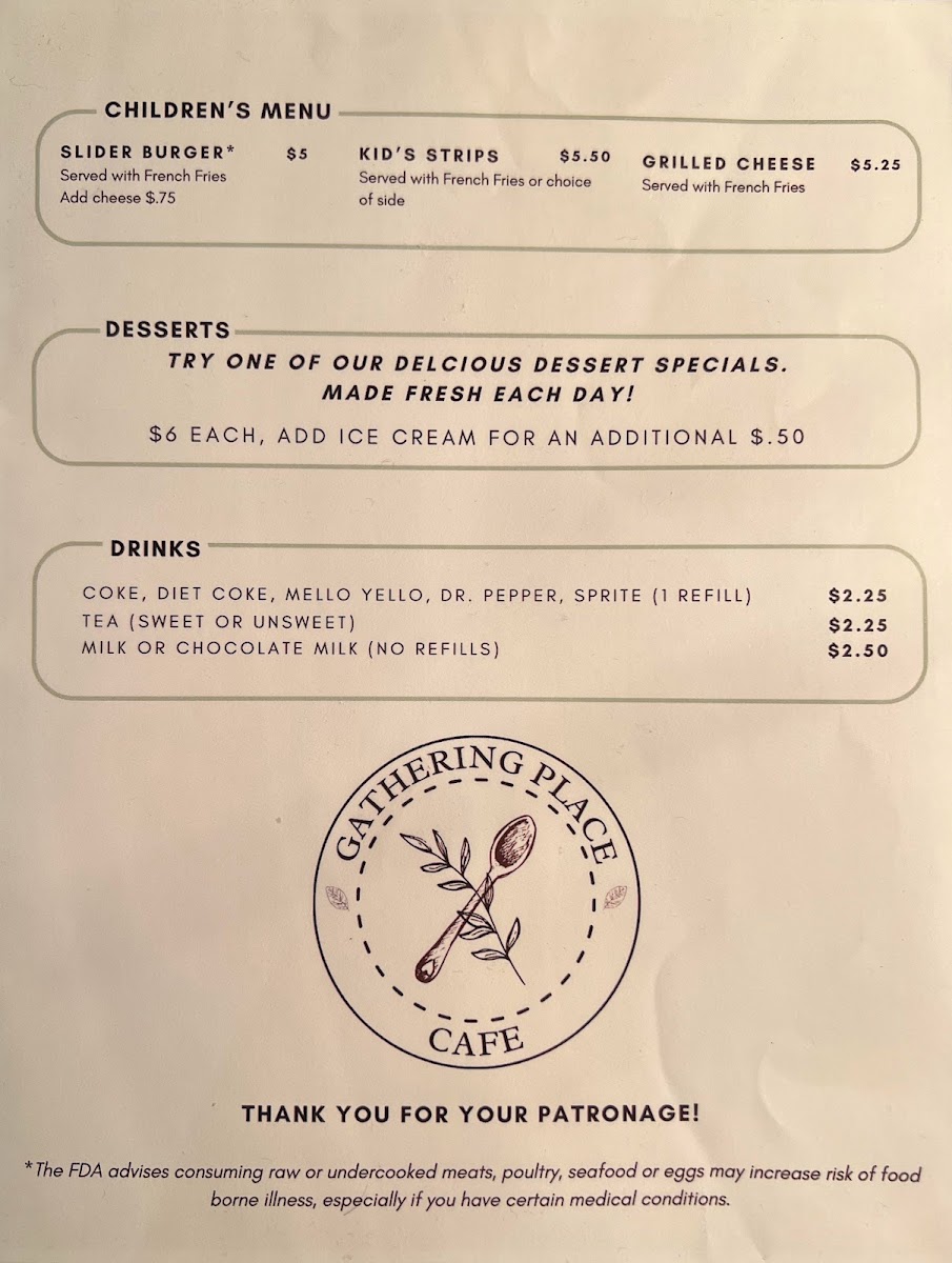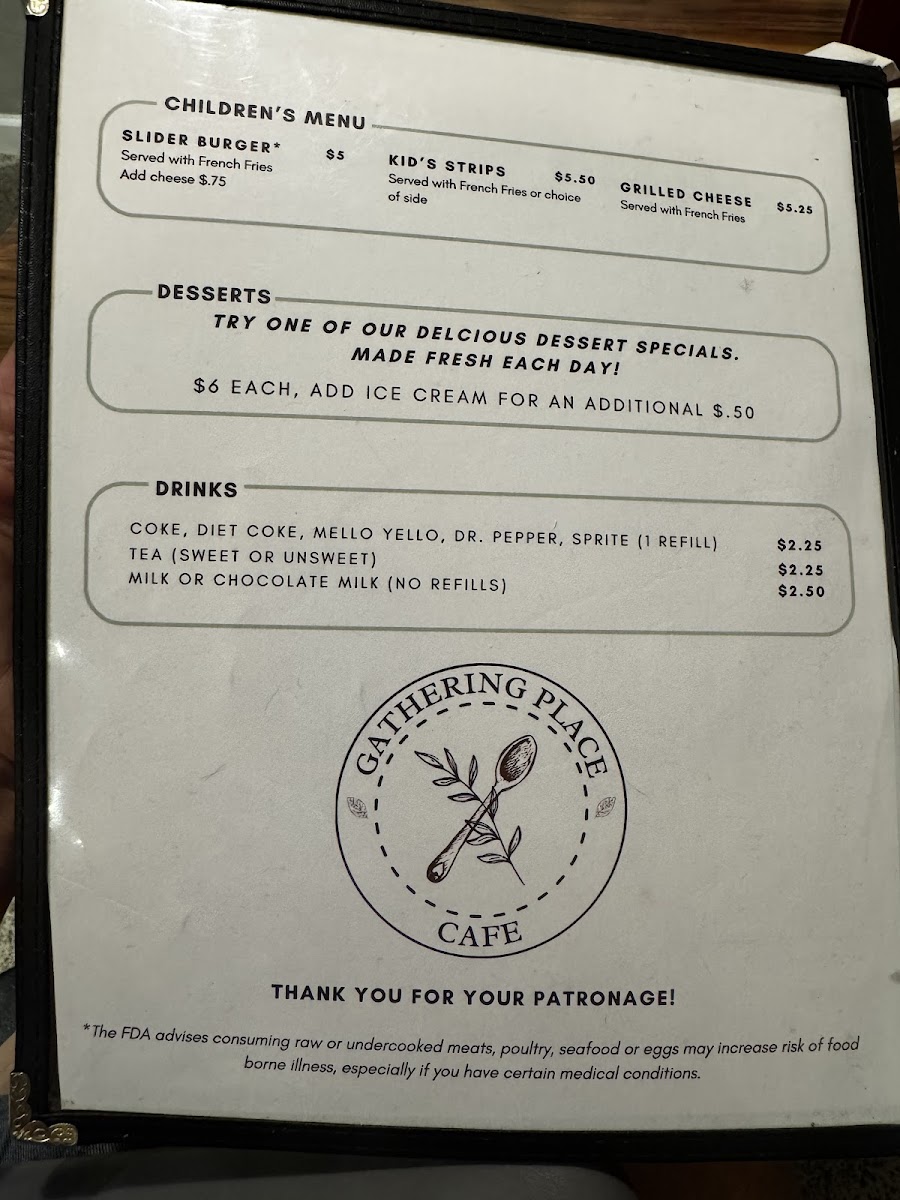 So, whether you're in the mood for something indulgent or craving a lighter option, the Gathering Place Cafe Menu has something for everyone to enjoy.